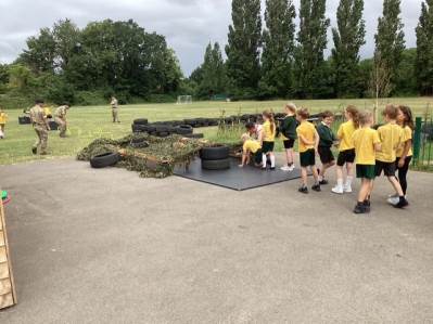 On Wednesday 5th March, a member of staff with connections to the Imjin Barracks kindly organised a 'Tin Phys' session in school. Military PTIs from the camp came to school and delivered a fitness session for the children. In return, families of the school donated an item of food to the local foodbank at GL3 Community Centre. The children had a great time, please see some photos of the day below: